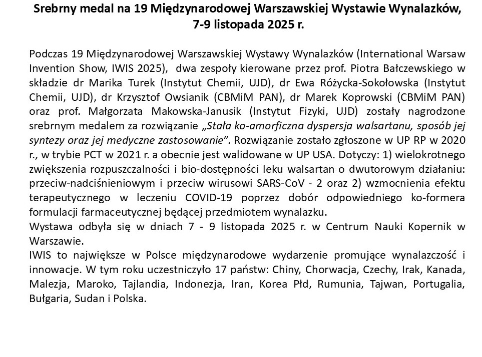 Srebrny medal na 19 Międzynarodowej Warszawskiej Wystawie Wynalazków, 7-9 listopada 2025 r.