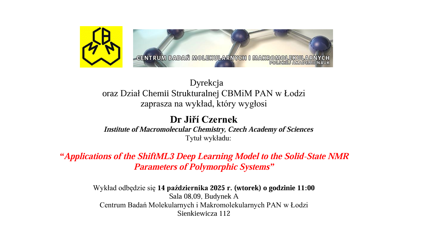 Strona główna » Wiadomości » Wykład Dr. Jiří Czernek z Institute of Macromolecular Chemistry, Czech Academy of Sciences
