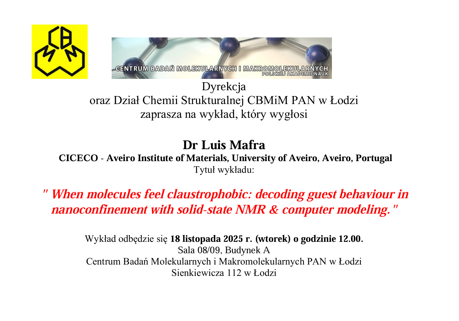 Wykład Dr. Luisa Mafry z CICECO – Aveiro Institute of Materials, University of Aveiro, Aveiro, Portugal